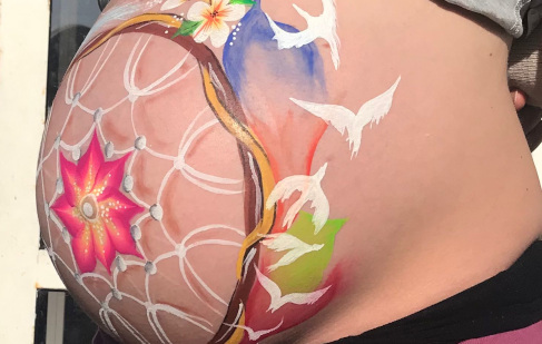 Il consiste à transformer le ventre rond des futures mamans en oeuvre d’art. Tous les matériaux sont absolument sans danger pour vous et votre bébé.